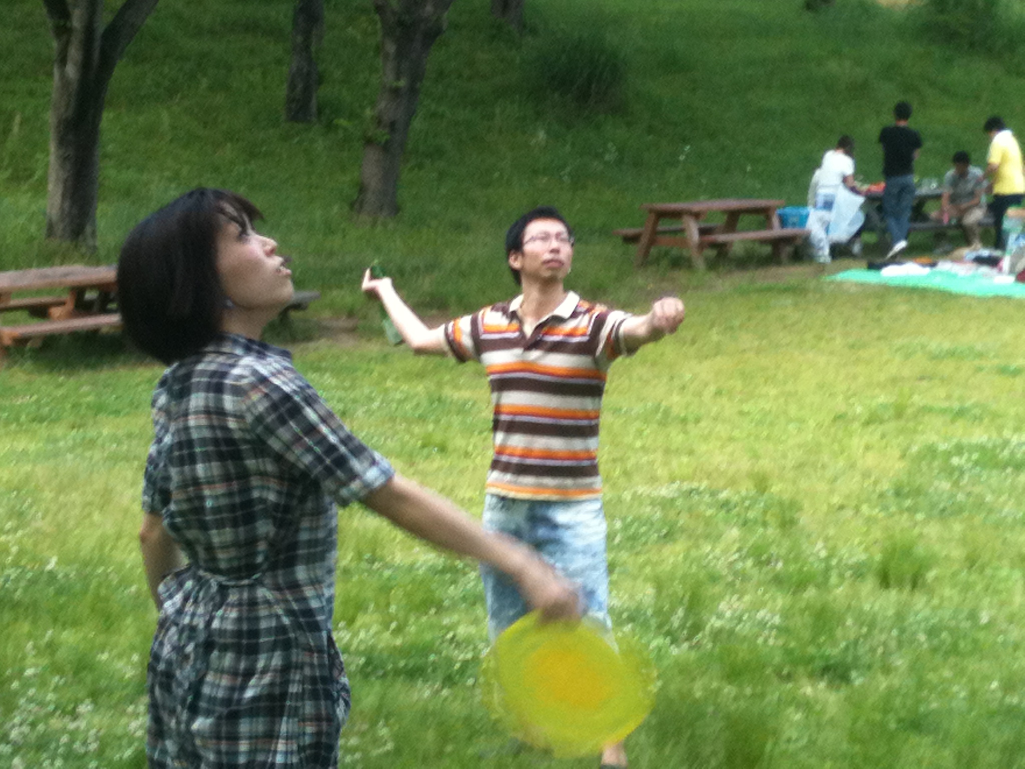 皆で遊んでたフリスビーを打ち上げちゃった人がいたので、