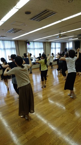 講習では輪っかになって踊りますが、男性は注意を払って