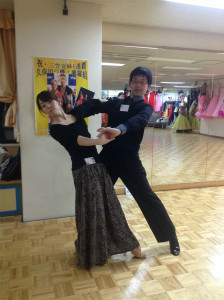 回転自体が難しいのですが、ここで男性のリードの秘伝を教えました。