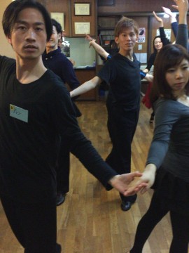 また、スピンターンの際はリーダーさんは後退の1歩目の際につま先を内側へ向けましょう。