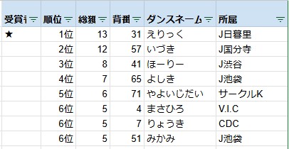2位 21 J池袋 たか CDC どいだむ