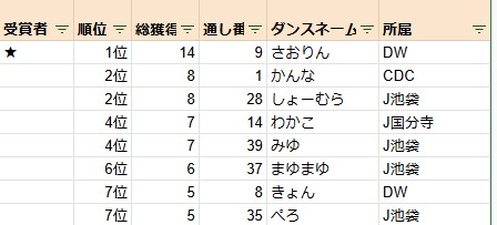 1位 40 J池袋 だいき J渋谷 さやか